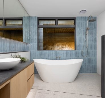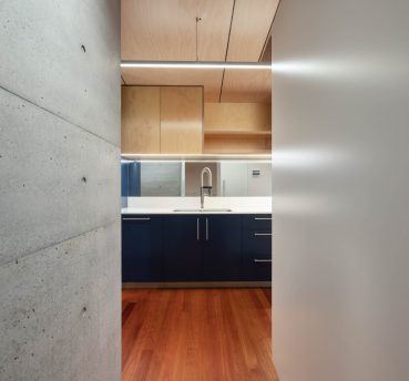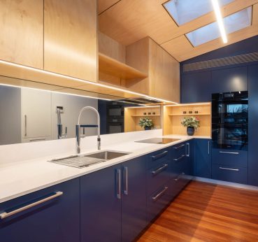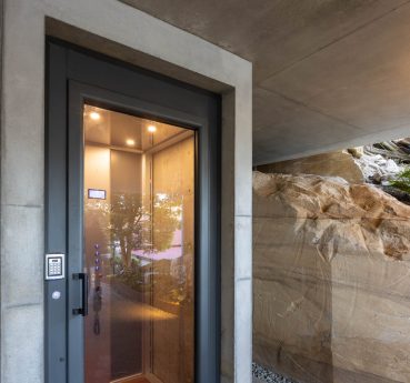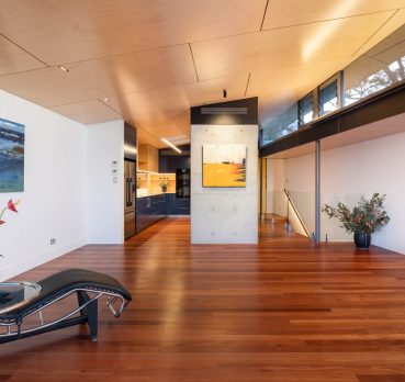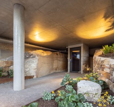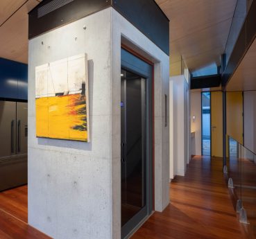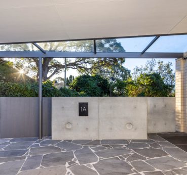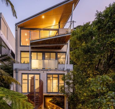 This new build created a contemporary three story residence on an unusual site. The home is nestled into an excavated sandstone cliff face, with a landscaped understory leading to a lovely garden. A lift connects all four levels, allowing comfortable retirement living for the clients and spectacular water views from the living areas on street level.